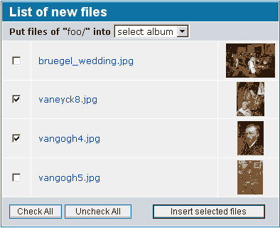 Därför bör du i förväg bestämma den struktur för mappar och filer som du tänker använda för uppladdning av filer. De behöver hamna i mappen "albums", och det är tillrådigt att skapa en smart struktur av mappar och undermappar där.